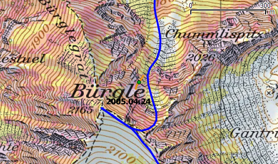 Negativ: Das Gelände in weiter Umgebung um die angebliche Unfallstelle ist unter 25° steil. Hier stellt sich die Frage, ob die Unfallstelle falsch erfasst wurde. Falls sie richtig erfasst wurde, ist davon auszugehen, dass es sich hier um einen kleinen Rutsch mit geringen Konsequenzen gehandelt hat.