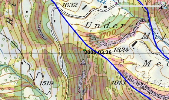 Negativ: Das Gelände in weiter Umgebung um die angebliche Unfallstelle ist unter 10° steil. Hier stellt sich die Frage, ob die Unfallstelle falsch erfasst wurde. Falls sie richtig erfasst wurde, ist davon auszugehen, dass es sich hier um einen kleinen Rutsch mit geringen Konsequenzen gehandelt hat.